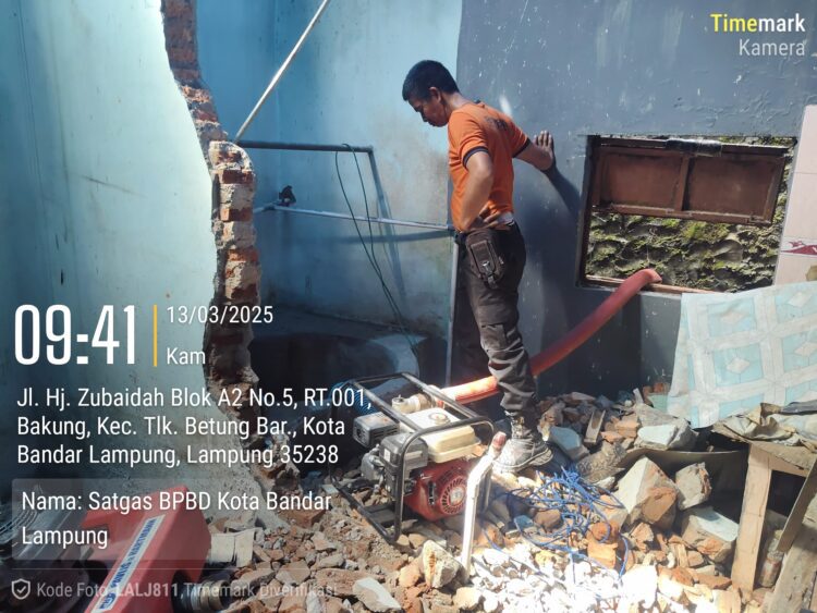 Bandar Lampung, Jelajah.co — Kamis (13/03/2025), BPBD Kota Bandar Lampung mengerahkan Tim Reaksi Cepat untuk evakuasi penyedotan sumur tercemar di Perumahan Bukit Bakung Indah Blok A2 No. 5, RT 01 LK 01, Kelurahan Bakung, Kecamatan Teluk Betung Barat.