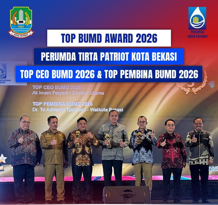 Tak hanya itu, Direktur Utama Perumda Tirta Patriot, Ali Imam Faryadi, juga dianugerahi sebagai TOP CEO BUMD 2026, sementara Wali Kota Bekasi, Tri Adhianto Tjahyono, menerima penghargaan TOP Pembina BUMD 2026.