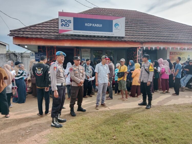 Way Kanan, Jelajah.co – Polsek Kasui Polres Way Kanan melakukan pengamanan dan monitoring kegiatan penyaluran bantuan langsung tunai sementara kesejahteraan rakyat (BLTS Kesra) di Kantor Pos 34765 Cabang Kasui, Kampung Jaya Tinggi, Kecamatan Kasui Kabupaten Way Kanan. Jum’at (28/11/2025)