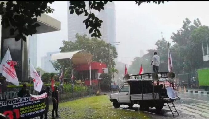 Aksi ini juga menyoroti paket pembangunan 32 rumah sakit di seluruh Indonesia tahun anggaran 2025. Salah satu proyek di Kolaka, Sulawesi Tenggara, sebelumnya terjaring OTT KPK. Massa mencurigai pola serupa terjadi di 31 rumah sakit lainnya, termasuk empat proyek di Sumatera, dua di Sumatera Selatan, satu di Bengkulu, dan satu di Lampung.