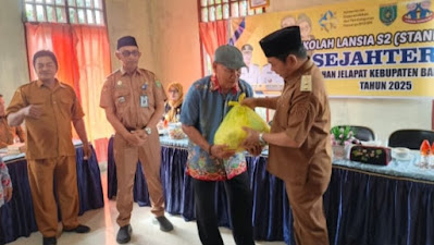 Barito Selatan, Jelajah.co – Wakil Bupati Barito Selatan, Kalimantan Tengah, Khristianto Yudha, menyerahkan 20 paket sembako beras kepada para peserta Sekolah Lansia di Kelurahan Jelapat, Kecamatan Dusun Selatan, Selasa (02/12/2025).